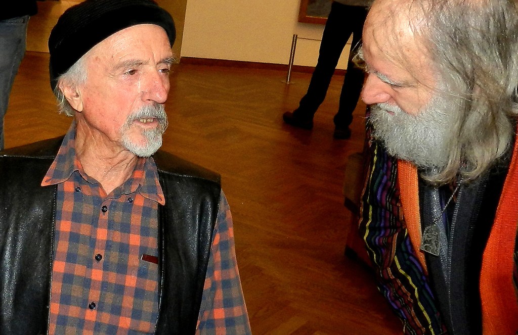 Beim kurzen Gespräch mit dem Meister (nach einem klassischen Konzert im Wiener Leopold-Museum) konnte sich dieser nur noch marginal an die Entstehung des obigen Nibelungen-Bildes (München) erinnern. Damals (7. Dez. 2014) erhob sich Brauer mit beneidenswert tänzerischer Leichtigkeit, eilte zum Lift, entschied sich dann aber für die lange, steile Treppe, über die er flugs entschwebte … (- Ausstellung zum 85er)
