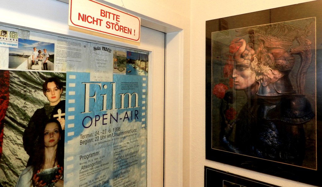 Lohengrin-Plakat (E. Fuchs) im Vorraum neben dem häuslichen Archiv