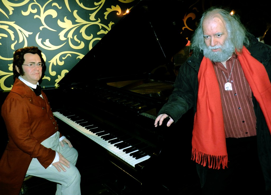 Für die Tonspur dieser Visualisierung griff nicht (- wie obiges Bild vermeinen ließe) Liederfürst Franz Schubert daselbst in die Tasten, sondern es handelt sich um eine alte Konzertaufnahme aus den 80ern mit H. Rogl und dem Blog-Autor als Interpreten …