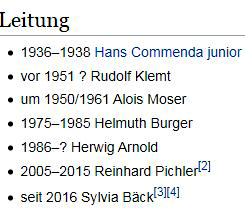 Weiters beinhaltete der Wikipedia-Auftritt falsche Daten & Lücken u. a. beim Thema Direktionen: