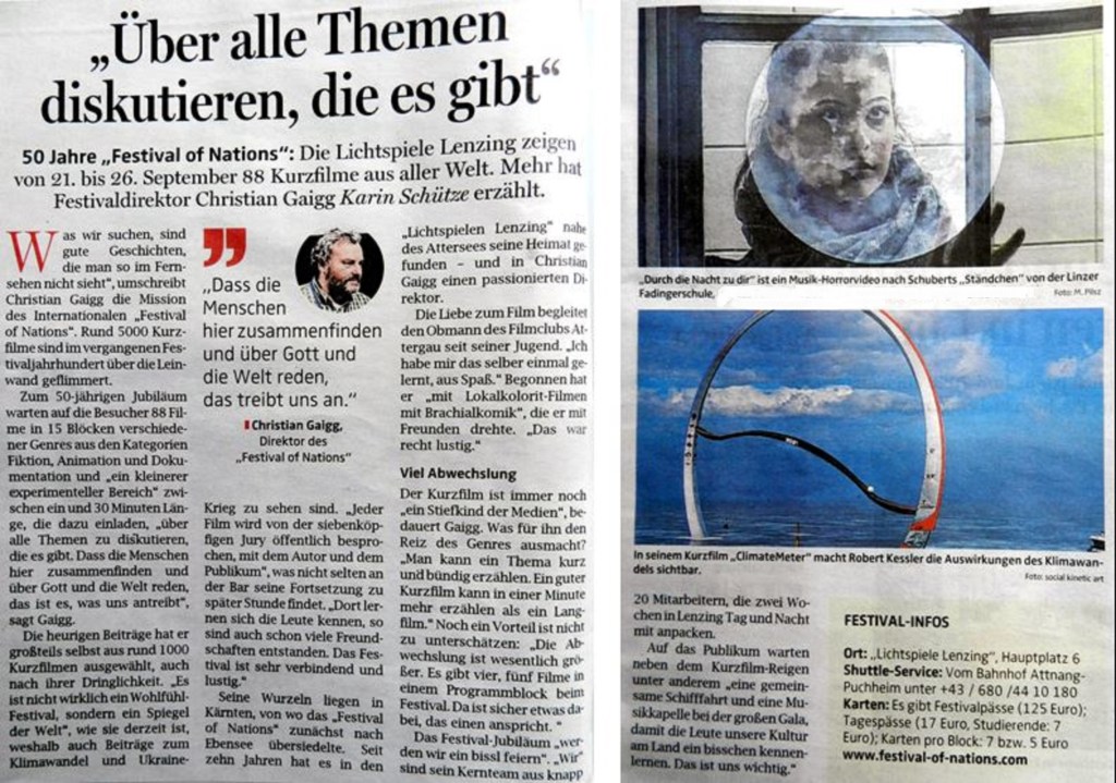 Auch heuer gab’s wieder jede Menge Promi-Beteiligung: Karikaturist Gerhard Haderer (Ehrenjuror) hielt die Eröffnungsrede, unter den Filmautoren fanden sich u. a. der Salzburger „Jedermann“ Philipp Hochmair, sowie Leni Gruber und unter den Schauspielern Simon Schwarz. Kammersänger Herbert Lippertsamt Band war Act bei der „Bosna-Party“ am Attersee …