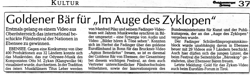 Seit das Filmfestival 1989 von Kärnten nach Ebensee übersiedelte, beteiligte sich dieLinzer Fadingerschule alljährlich mit Videos und als Team aktiv bei der rundum Betreuung der Veranstaltung (Technik & Radio).