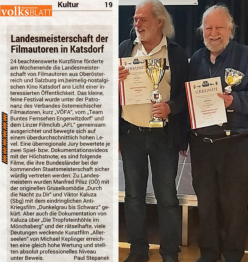 Der nunmehr bereits 8. Film-Landesmeistertitel OÖ seit 1993 (Filmographie <<<<) für den BLOG-Autor & seine jungen Teams
