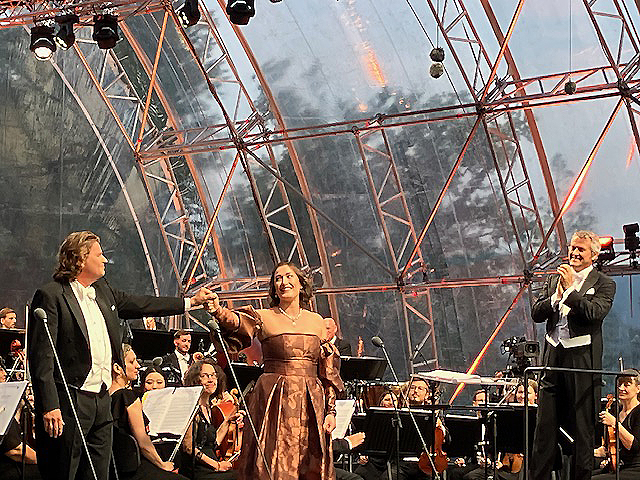 Unzweifelhafter Höhepunkt des Abends im Toscanapark: Das finale Duett aus dem ersten Akt Walküre ab den Winterstürmen, die dem Wonnemond wichen … Sensation des Abends: Die kongeniale Erica Eloff (- zuletzt Eva in den Linzer Meistersingern) … Unweit des Festgeländes, wo sich die Sonne die schönen Augen rot weint, steht in Altmünster die Villa der Wagnermuse Mathilde Wesendonk, die hier am Traunsee am 31. 8. 1902 verstarb. Sie verbindet man mit den gleichnamigen Kunstliedern, Tristan und Isolde, sowie speziell dem Auftakt der Walküre …