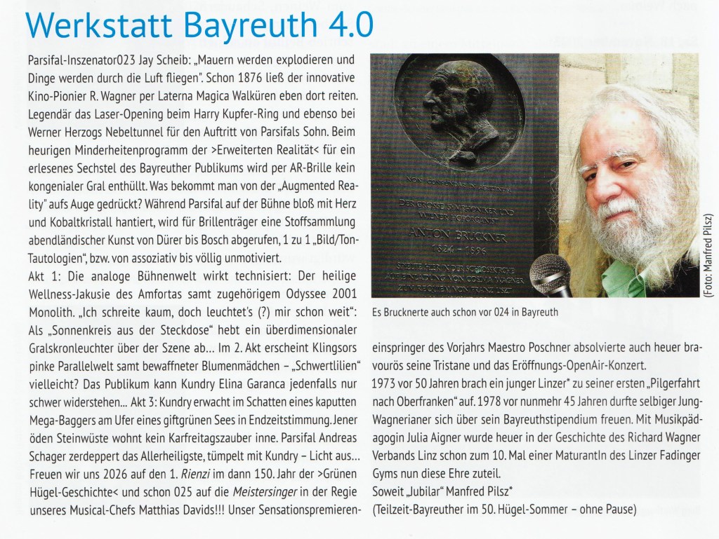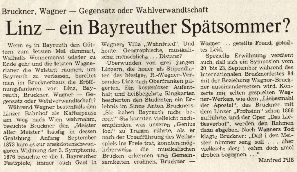 Vor exakt 40 Jahren war der Blog-Autor (damals noch als >Freier Mitarbeiter< für den ORF) nach Oberfranken unterwegs, um ein Feature zu den Bayreuther Festspielen 1984 zu gestalten … auch in regionalen Printmedien gab’s von ihm alljährlich ein Resümee zum jeweiligen Festspielsommer:
