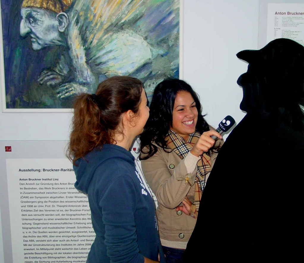 In alten Schulzeiten des Blogautors stand Bruckner speziell in der 1. Septemberhälfte im Zentrum des pädagogischen Wirkens: Ausgehend von ARS & Brucknerfest war Radio FRECH allerspätestens ab U19 und der Klangwolke im Einsatz. Das Blog-Projekt „Bruckner On Air“ begleitete jahrelang bis 11. Oktober das dicht bunte Festivalgeschehen. MedienschülerInnen arbeiteten jeweils einen Monat an Beiträgen zum Brucknerfest mit. Bei Linz09 steuerten die jungen Leute dort sogar eine Installation für das Projekt „Augenmusik“ bei – mit eigenen Musikvisualisierungen. Schon in den 1. Klassen war der Hauskomponist das Eröffnungsthema und im Verlauf des SchülerInnendaseins tauchte Antonius B im Jahreslauf bis zur Maturaklasse zwischen Moldau-, Zauberlehrling-, Vivaldi-Projekten, Glass, Mahler, Wagner … immer wieder auf – und sei es in Form eigener diverser Visualisierungen.