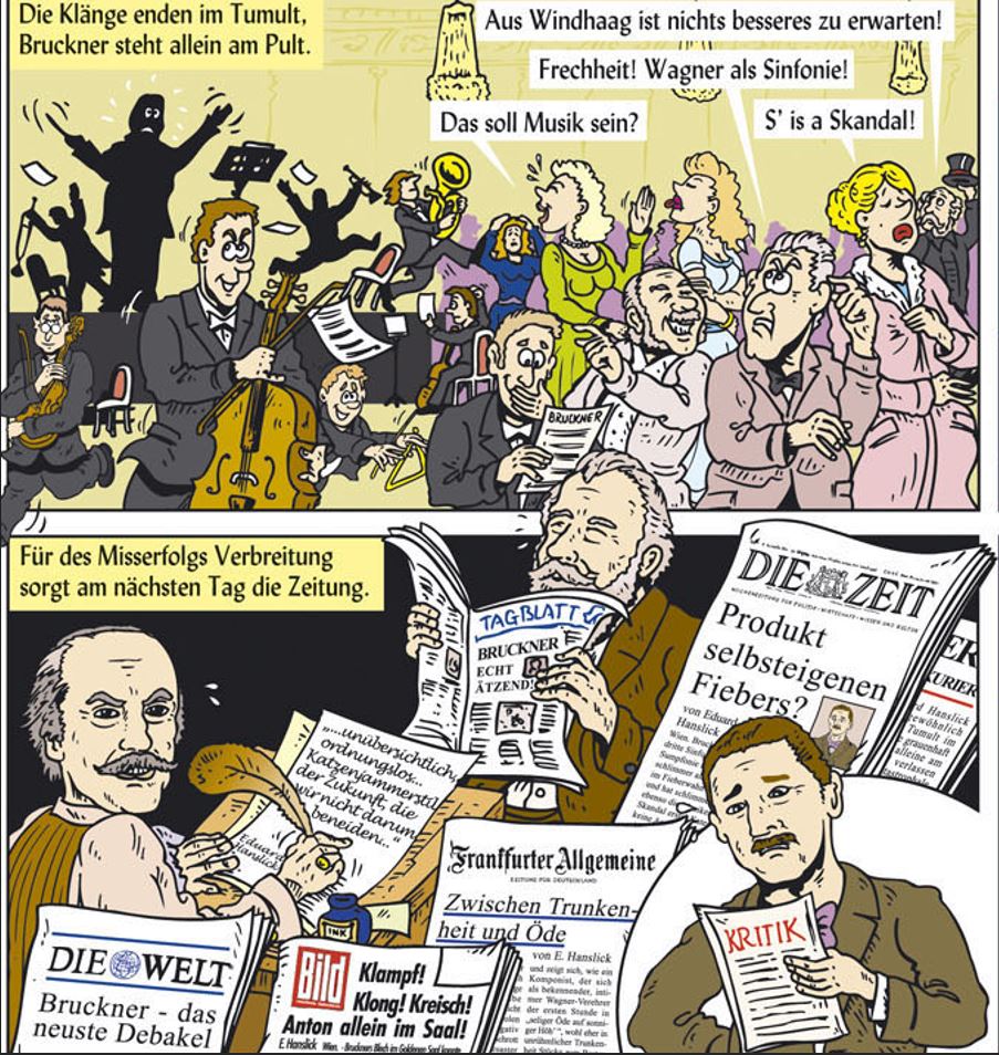 Was verursachte Bruckner den schlimmsten Stressssss? Das „Berufspublikum“ – sprich: Die Kritiker Max Kalbeck, Gustav Dömpke, Eduard Hanslick & Co …