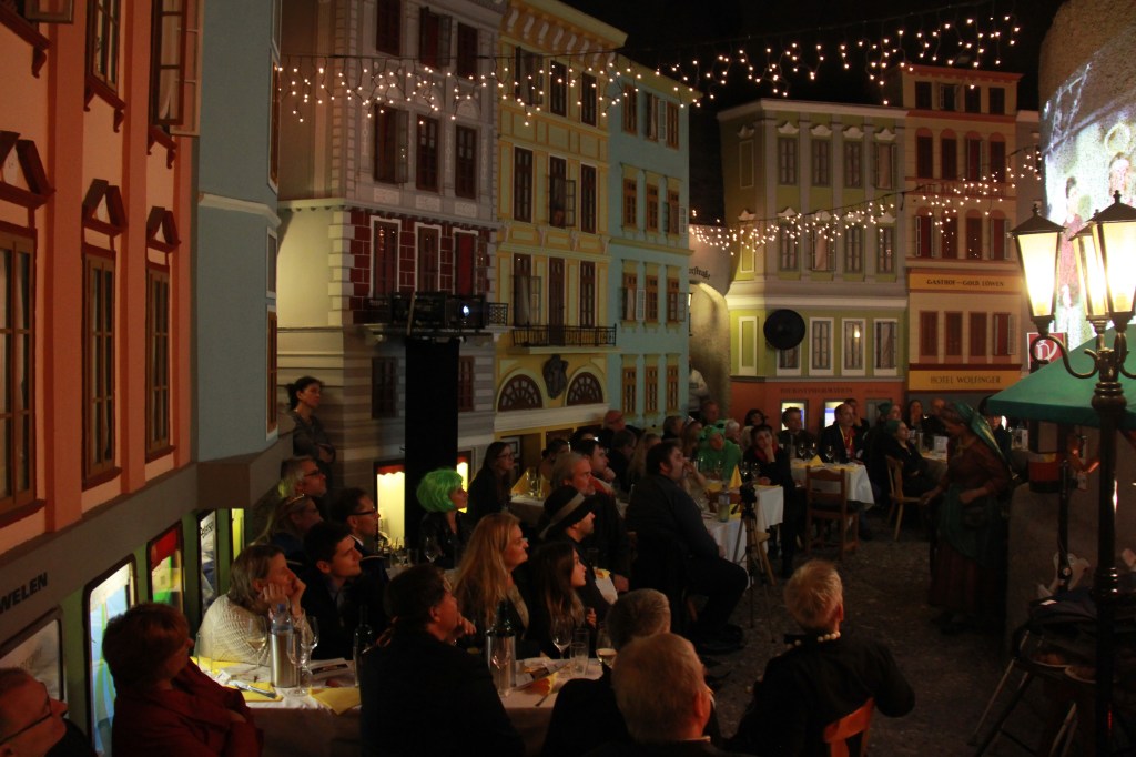 Nebst dem Kunstgenuss gab’s auch noch Aigners „Bruckner-Wein“ / Im Bild rechts: Florian Graupa, der während des Abends den Blog-Autor zur Premiere (1. März 025) seines neuen Films „Captain Puchenau“ einlud.