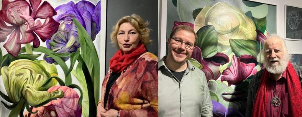 Lukas Johannes Aigner (hier vor seinem „Blüten-Bruckner„) lud zur Vernissage in sein zauberhaftes Atelier (hinter dem Neuen Rathaus) Die enge Verbindung zwischen Bild & Musik zeigte sich zu Herbstbeginn bei der COSI FAN TUTTE-Produktion, für die Aigner Bühnenbilder kreierte …