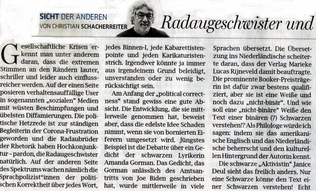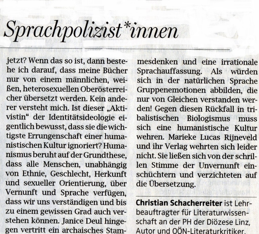 ANHANG (NEWS & OÖN) – Nach den „Religionswächtern“ im Morgenland, sind seit geraumer Zeit nun scheint’s „Kulturwächter&Innen“ im Abendland auf der Bühne erschienen …